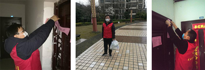一場新冠肺炎疫情的到來,就是一場人類與病毒殊死決斗的戰(zhàn)爭。無錫創(chuàng)投集團聯(lián)合黨支部響應以習近平同志為核心的黨中央的號召,在產業(yè)集團黨委的堅強領導下,凝聚起牢記初心使命,堅定抗擊疫情的必勝信心,鼓勵全體黨員“控疫情、我先行、作表率”,2月10日接到市委組織部《關于組建市級機關、事業(yè)單位、國有企業(yè)“黨員先鋒隊”參加基層一線疫情防控阻擊戰(zhàn)的通知》后,全體黨員和入黨積極分子踴躍報名,黨支部迅速選拔組建了15人組成的先鋒隊隨時待命。按照上級安排,先后從中挑選兩批3人次參加了產業(yè)集團赴社區(qū)一線疫情防控黨員先鋒隊,用實際行動踐行使命、書寫忠誠,體現(xiàn)了高度的政治自覺和責任擔當。 無錫市經開區(qū)尚閑社區(qū),由周新苑一、二、四期組成,有住戶4650戶,居民13000余人,疫情防控工作較為復雜。3月8日至3月21日,產業(yè)集團第二批黨員先鋒隊疫情防控志愿者們14天無休戰(zhàn)斗在社區(qū)抗議一線,用實際行動保護社區(qū)人員的健康安全。 為了讓居民了解疫情的嚴重性,在疫情期間正確佩戴口罩,做好安全防護措施,黨員先鋒隊每天上午、下午到整個社區(qū)巡邏宣傳,每次不少于1小時。 來自無錫創(chuàng)投集團聯(lián)合黨支部的孫超、朱曉春兩名黨員志愿者正在為為社區(qū)的隔離戶提供服務(貼封條、送外賣、送快遞、清理生活垃圾等)。