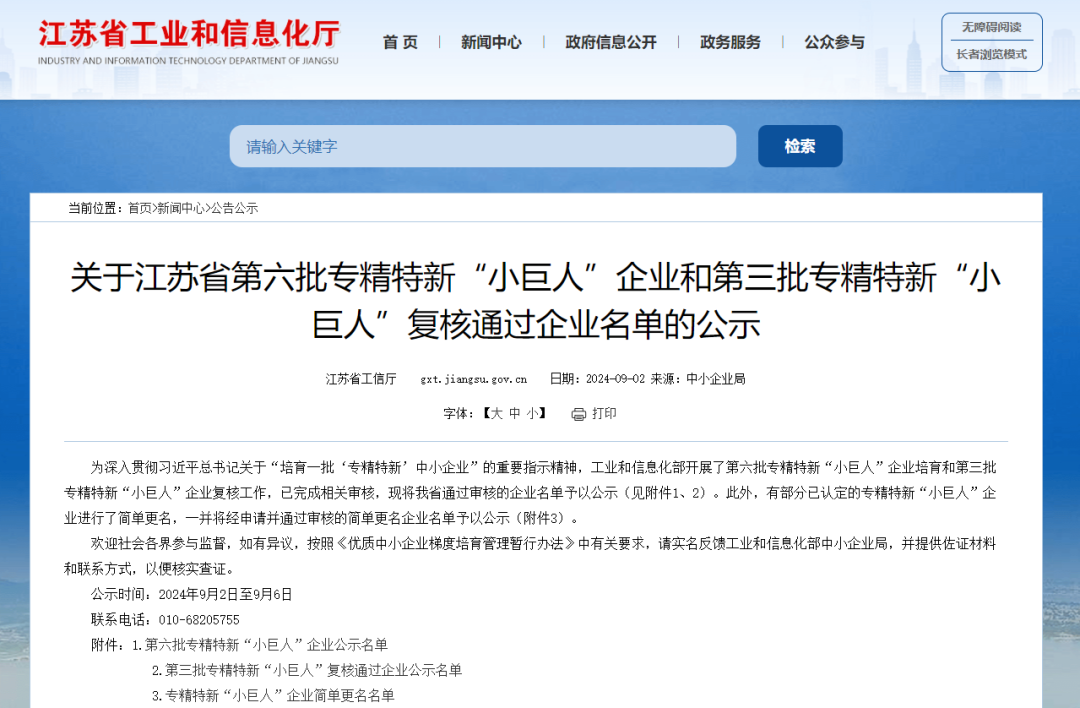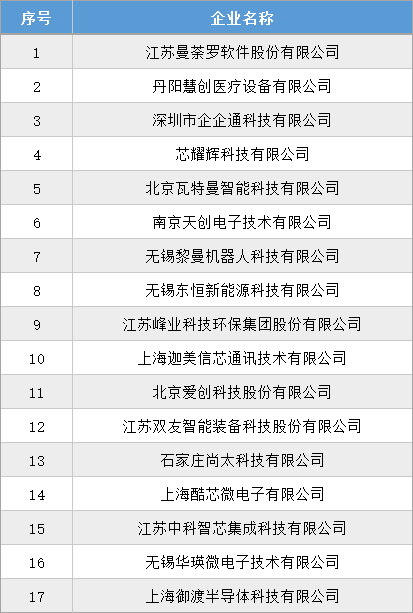 根據(jù)工信部統(tǒng)一部署,江蘇省工信廳于2024年9月2日發(fā)布了《關(guān)于江蘇省第六批專精特新“小巨人”企業(yè)和第三批專精特新“小巨人”復(fù)核通過企業(yè)名單的公示》,其中江蘇曼荼羅軟件股份有限公司、丹陽慧創(chuàng)醫(yī)療設(shè)備有限公司、深圳市企企通科技有限公司等17家創(chuàng)投集團被投企業(yè)入選第六批專精特新“小巨人”企業(yè)。